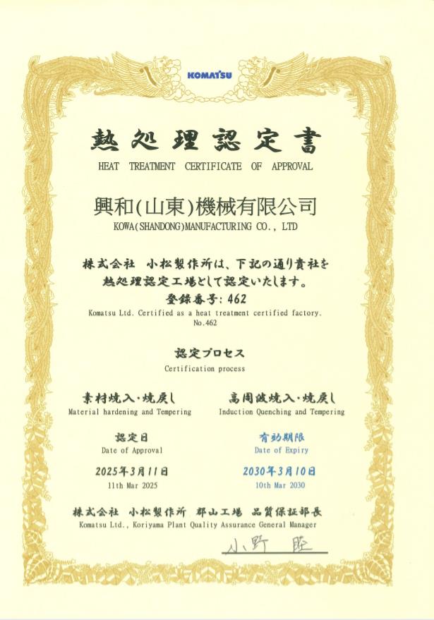 本公司成立于2008年在山東省濟寧市,是日本株式會社興和工業(yè)所在海外投資成立的一家全日資企業(yè),總投資額42億日元,占地面積27,325㎡,引進日本株式會社興和工業(yè)所先進的生產(chǎn)技術(shù),進口國外數(shù)控自動化設備,工程、礦山機械制造企業(yè)之一——小松集團也以出資方式參與了本公司的建設。